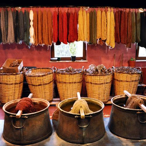 • vegetable dyes are used in rustic designs or "village" pieces (used to add character to the rugs).