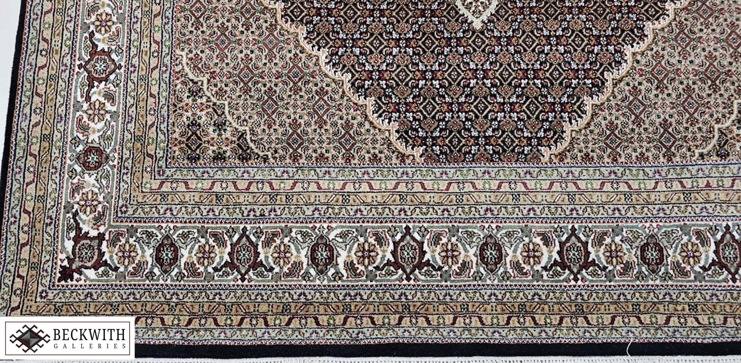Our Indo Collection brings the beauty of Persian Designs onto an Indian handwoven surface. These pieces are created in India with high quality hand-spun wool making it both durable for heavy traffic and easy to clean. The intricately woven silk incorporated into the design provides a level of understated luxury. The rug features a mesmerizing pattern of fish motifs, known as "Mahi," which symbolize prosperity and good fortune.